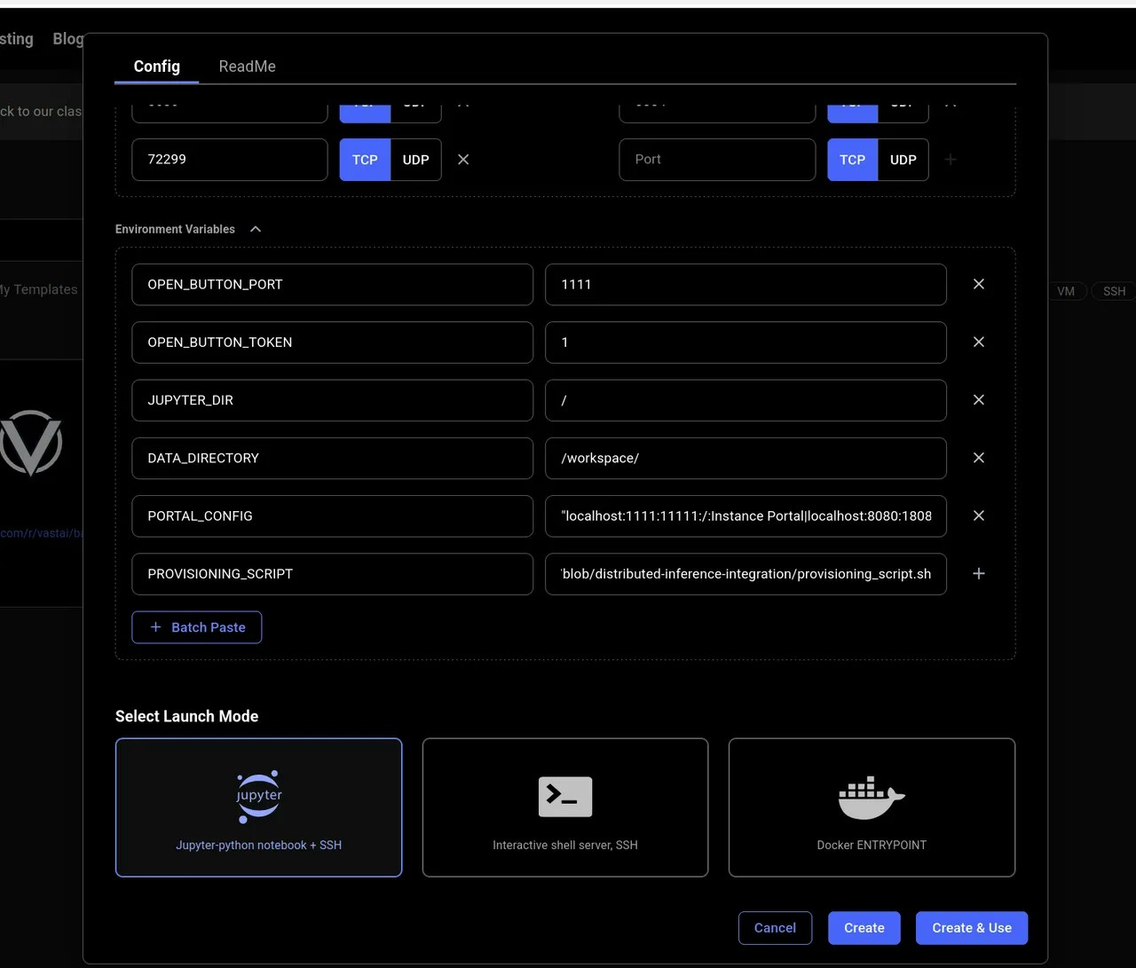 This guide covers advanced customization techniques available on the Vast.ai platform. These features allow you to extend and enhance your templates beyond basic configuration. For a complete reference of all template settings, see Template Settings. For a step-by-step tutorial on creating your first template, see Creating Templates.Customization Options