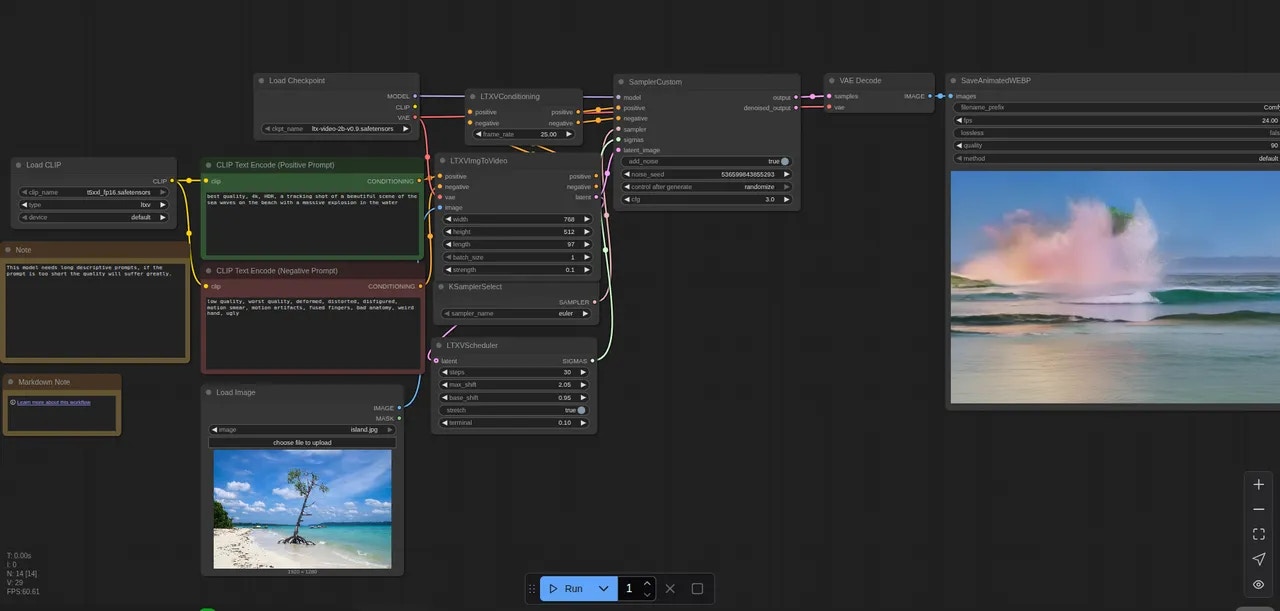 Finally, click the Run button to process the workflow.